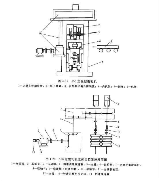 650立棍型鋼軋機(jī)如圖4-19所示,主要由機(jī)架,立棍主傳動(dòng)裝置,壓下裝置,內(nèi)機(jī)架,內(nèi)機(jī)架平衡升降專(zhuān)職及換輥裝置等組成。